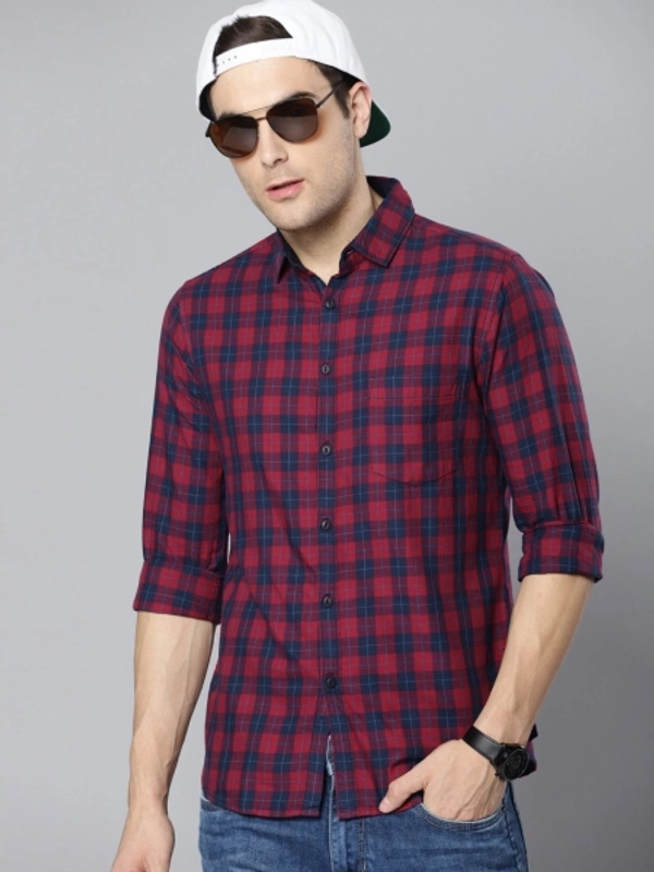 Men's Slim Fit Checked Slim Collar Casual Shirt