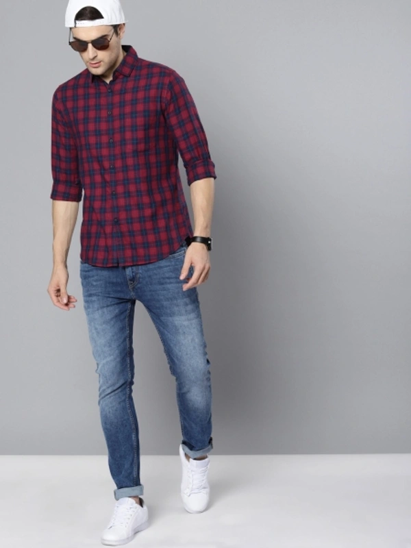Men's Slim Fit Checked Slim Collar Casual Shirt